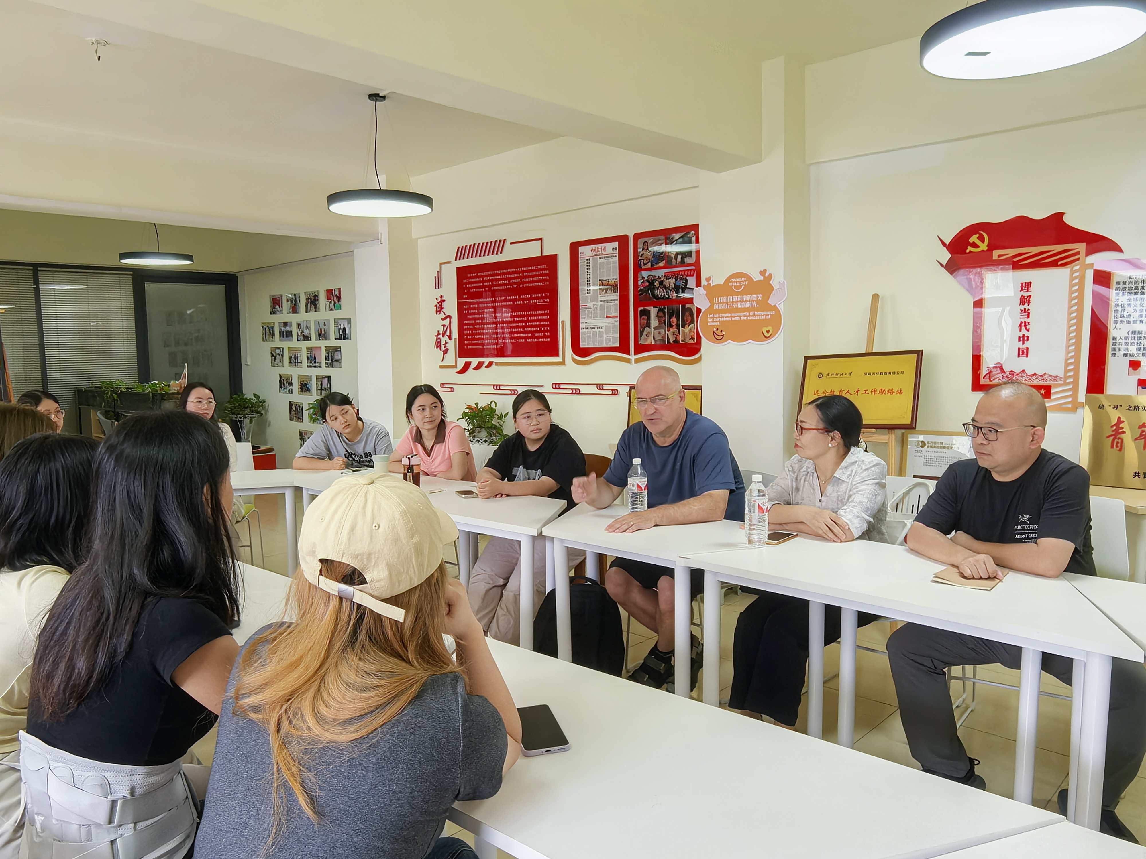 9月9日,世界著名科学家来鄂讲学计划专家,剑桥大学中文系教授、博士生导师Roeland Sterckx应邀到雷火竞技平台 读“习”有声 一站式学生社区,与学院师生围绕中国传统文化、语言哲学及中西文化交流等主题展开座谈。学院本科生、研究生代表及青年教师共同参与了本次活动。