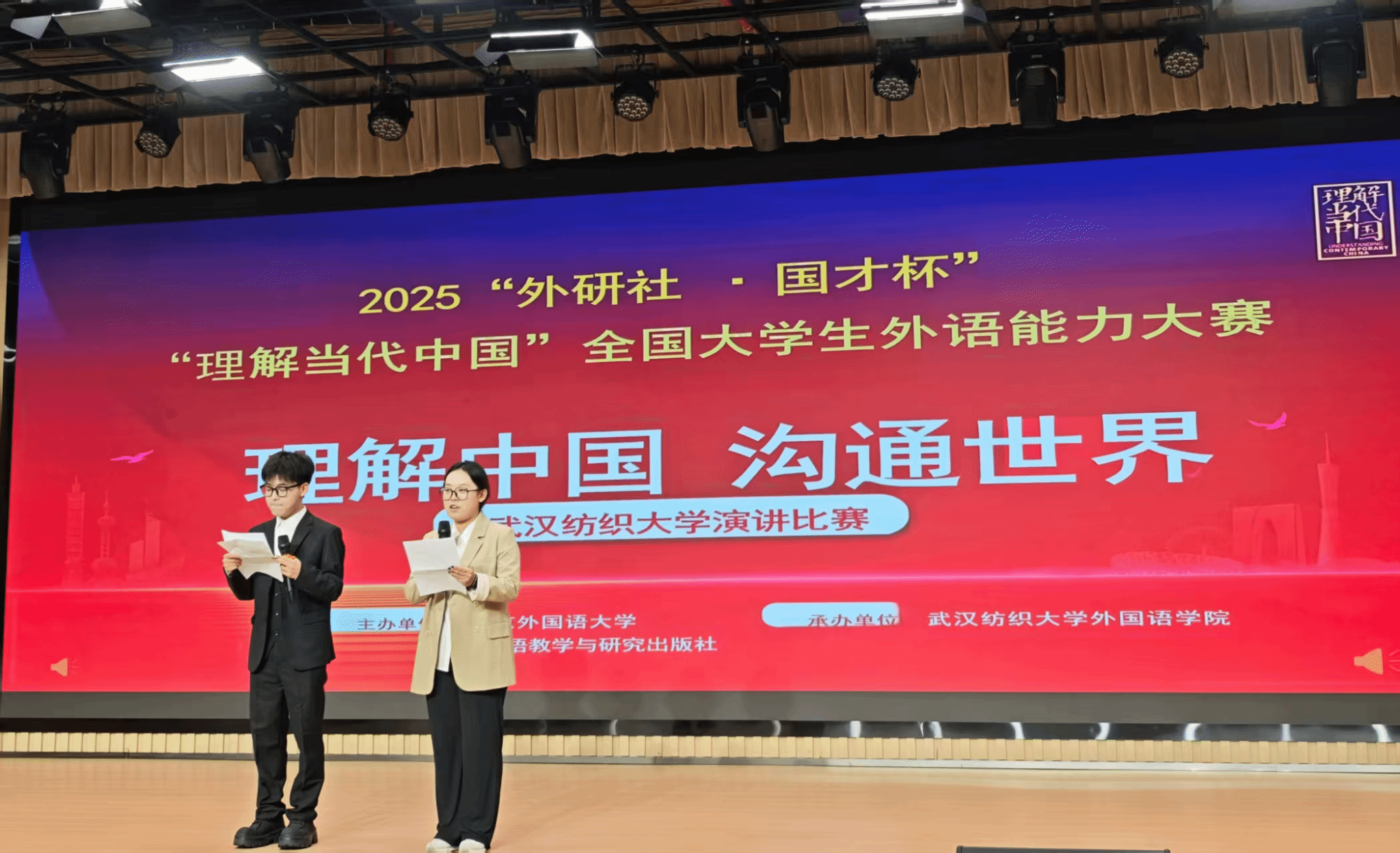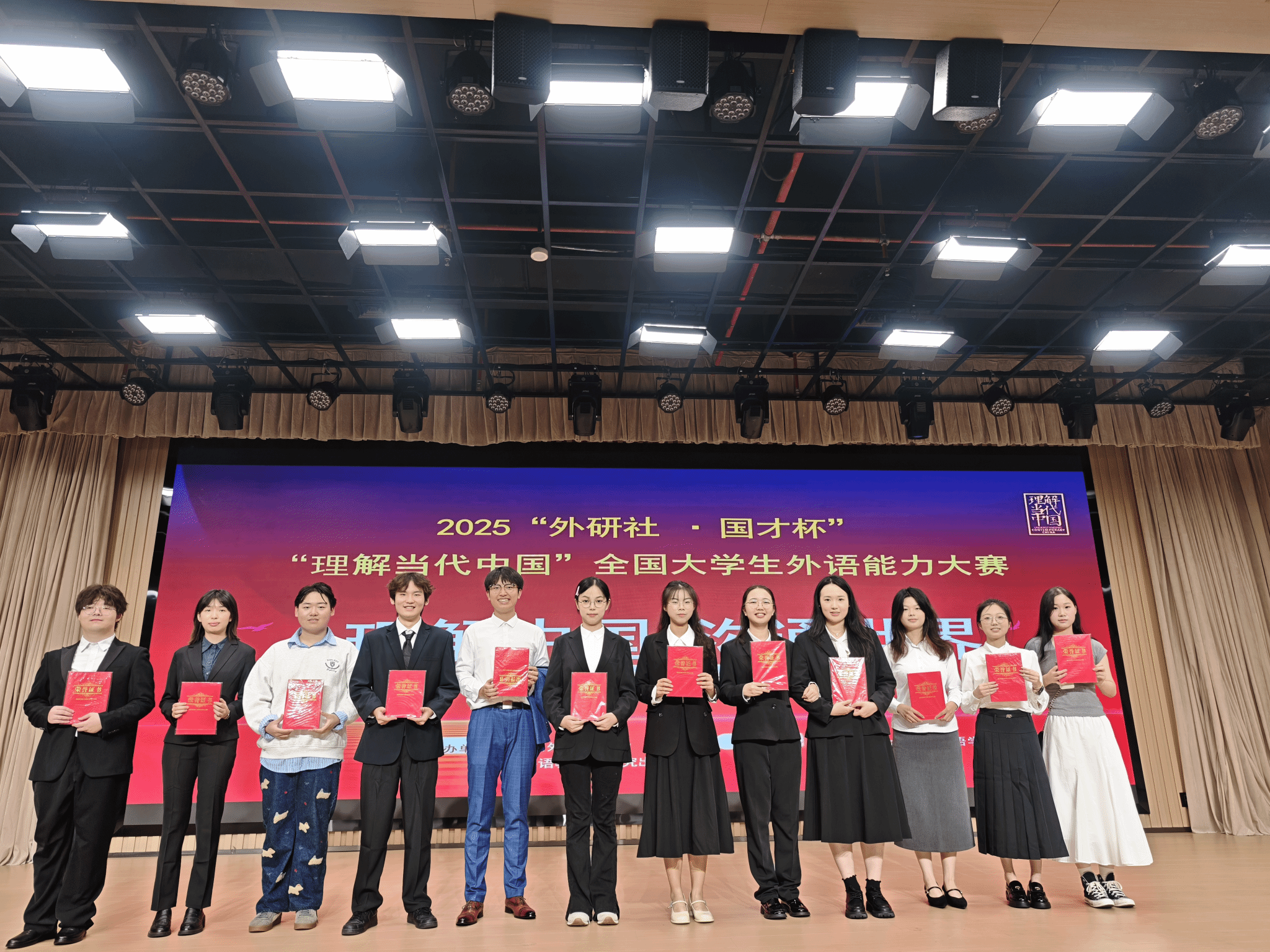 2025年“外研社·国才杯”“理解当代中国”全国大学生外语能力大赛雷火电竞官网英语演讲决赛暨外语文化节活动于10月9日下午在建全会堂圆满落幕。雷火竞技平台院长谭燕保教授、副院长罗绮伦副教授、副书记彭阳慈航出席活动。比赛由英语专业24级崔嘉靖同学与23级王依荷同学担任主持人。本次比赛紧扣“理解中国,沟通世界”的大赛宗旨,以“Striking the Waves”为主题,充分展现了我们学子扎实的外语功底、深厚的家国情怀与卓越的综合素养。