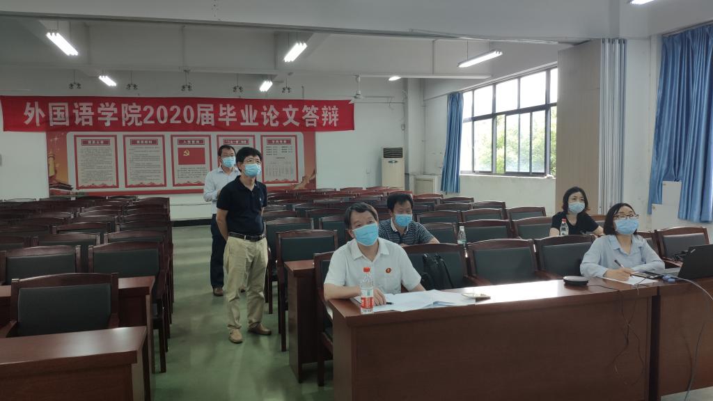 5月28日下午,受全球新冠肺炎疫情所致,在最大限度保障学生健康、安全及减少聚集的前提下,为确保我们2020届全体本科生毕业论文答辩的顺利完成,全体答辩人汇集云端,分别就各自的本科学士学位论文展开学理性论述,并就答辩组导师的提问展开理论性应处。教务处处长何畏到答辩现场对答辩工作进行了指导,本次答辩工作由学院教学副院长罗绮伦统筹协调,并由英语系副主任唐娴老师具体执行推进。