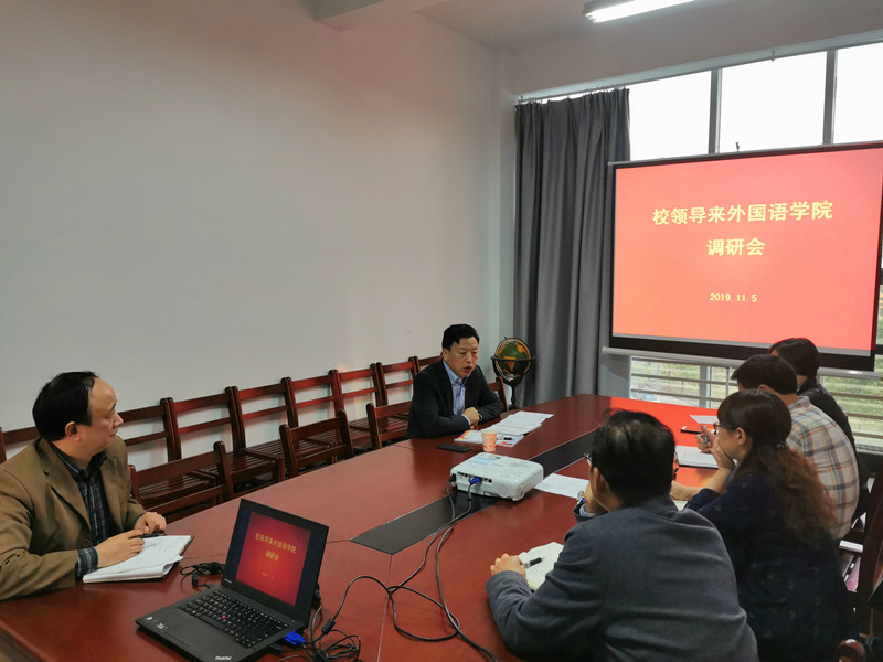 11月5日下午,校党委常委、纪委书记程碧海来到雷火竞技平台调研指导工作,走访了学院的翻译实训室、同传实训室和商务实训室,听取了学院领导班子的工作汇报,也对学院工作提出了明确要求。雷火竞技平台全体领导班子成员参加了调研会。