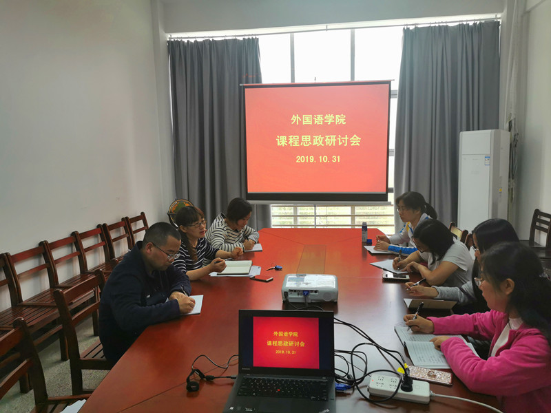 与会教师纷纷围绕“课程”与“思政”如何有效融合发表自己的看法。王芳副书记表示,可以通过开展“寻找心目中的外语老师”评选活动,通过宣传学院教师在教育教学活动中的先进事迹,引导学院全体教师比境界、讲奉献,争做学生的良师益友。刘方荣主任谈到,可以通过开展教研室之间的集体备课活动,通过交流互鉴、凝练总结,充分挖掘课程中的思想政治理论教育资源,创新课程内容与教学方法。刘珊主任谈到,可以借用学习强国APP中的大量英语翻译资源,通过开展线上双语时事新闻分享,线下英语知识竞赛的方式,扩大英语语言学习“课程思政”的受益面。杨雪主任谈到,可以结合U校园智慧教学云平台,在学生的课程学习反馈环节融入中国特色与国际比较、纺织特色与非遗文化传播等内容,提升学生对祖国、对学校、对专业的认同。郑亚娟主任谈到,可契合庆祝新中国成立70周年主题,开展英文版的“我为祖国献支歌”活动,通过歌唱祖国壮美70年,抒发爱国情,树立强国志,力践报国行。