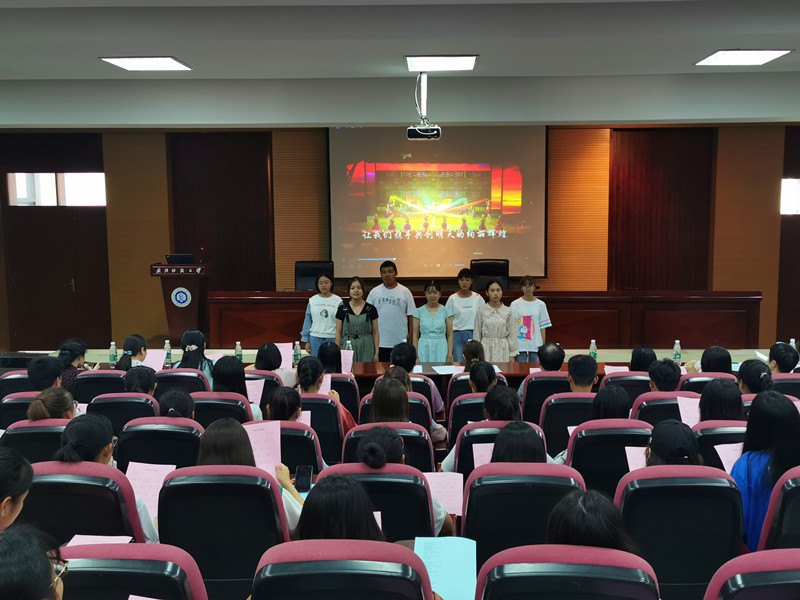 在简要介绍了出席学院开学典礼的学院领导和老师后,出席开学典礼的老师们和同学们一起合唱了《雷火电竞官网校歌》。