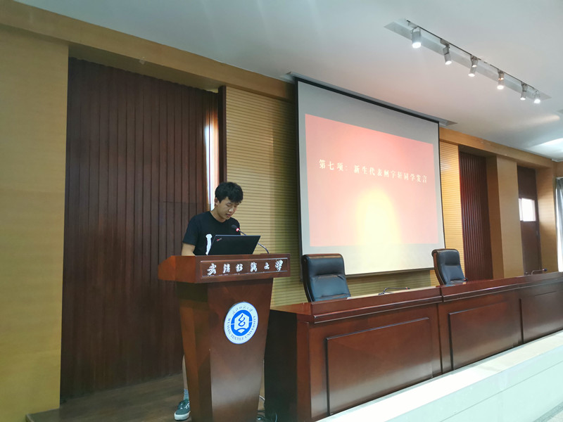 随后,辅导员阎浩老师播放了2019届优秀毕业生代表给2019级新生的寄语视频;2017级优秀学生李晓琳作为老生代表发言,2019级学生闸宇轩作为新生代表发言。