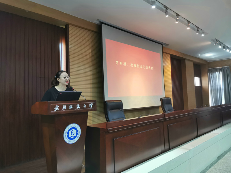 接着,商务英语系副主任关薇老师作为专业课教师代表致辞。关老师用流利的英语向全体2019级新生们讲述了一个外语人的奋斗史,她激励全体2019级新生珍惜青春韶华,敢于有梦、勤于追梦、勇于圆梦。