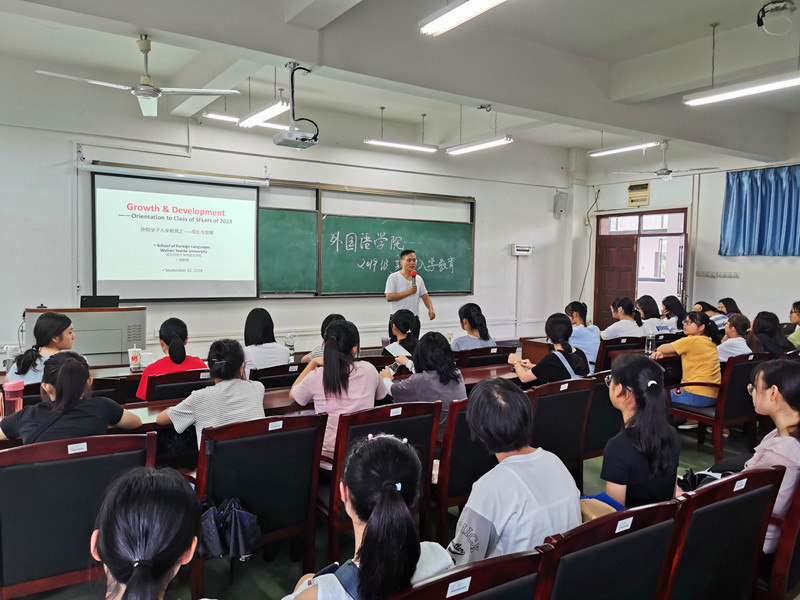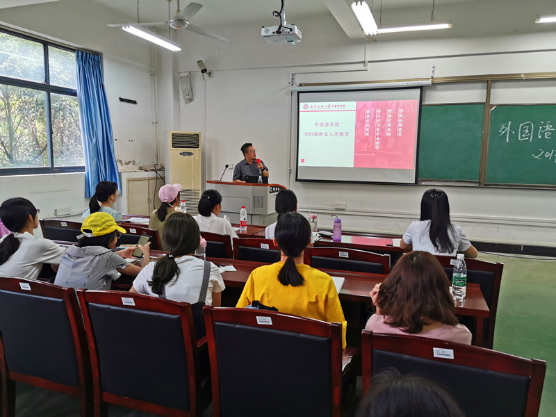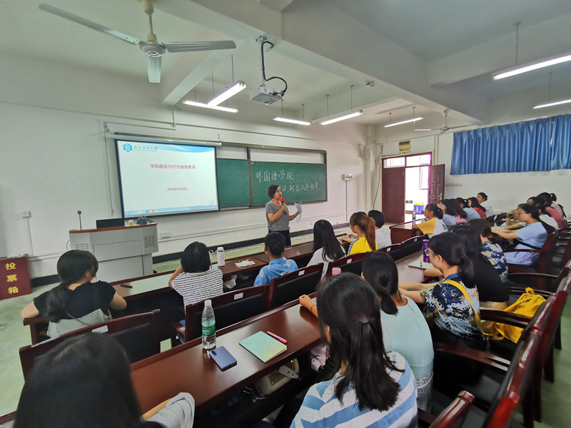 9月11日上午,雷火竞技平台副院长罗绮伦主讲入学教育第三课——专业发展教育。罗院长以全英文交流的方式与2019级新生们进行交流,积极引导新生们用英语进行交流发言,这让新生们感觉到耳目一新。罗院长详细介绍了英语、商务英语专业的人才培养方案内容,向新生们讲解了各类课程学分设置的目的和意义。他希望2019级新生们能尽快转变角色,适应专业发展需求,积极调整学习状态,为自己的大学四年做一份详细的学习规划。