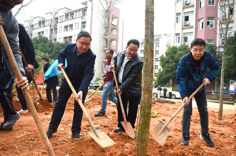 3月13日上午,由雷火竞技平台、校友办、后勤集团联合举办的第四十届雷火电竞官网“绿色校园”植树节活动暨汤富华教授捐赠“银杏林”仪式在阳光校区公租房东侧绿地如期举行。校领导彭育园、刘在洲、黄运平、罗锦银,雷火竞技平台汤富华教授及学院全体班子成员和部分教师代表,校友办、后勤集团、校办、国际学院班子成员及部分工作人员,30余名国际学院留学生及100余名在校大学生参加了此次植树活动。