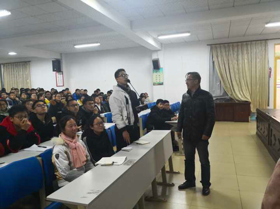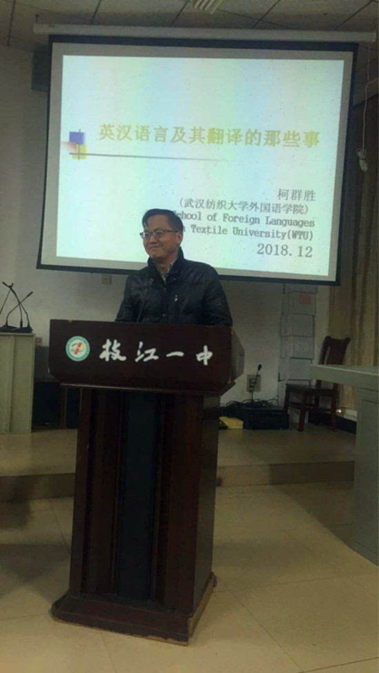 报告现场,柯院长用自己诙谐幽默的语言将英汉语言的差异及翻译讲得生动有趣,枝江一中的同学们积极与老师进行互动,现场气氛热烈,产生了较好的反响。