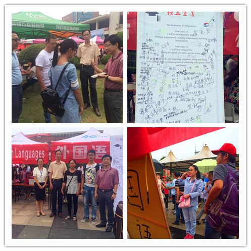 self-respecting, confident, strong and loving. I pledge to be a virtuous person of scholarship who pursues truth and beauty.”全文译为:“从今天起,做一个独立的人,独立思考、独立学习、独立生活/从今天起,做一个有爱的人,关爱自己、关爱他人、关爱社会/我要做到:厚德、博学、崇真、尚美”!2015级新生纷纷在签名墙上许下自己青春的承诺,并与家长一起在签名墙前合影留念,共同见证新生开启大学生活的第一步!