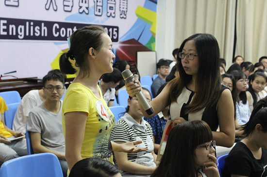 6月18日,在大学生活动中心103室,为期近两个月的2015年第一届“未来之星”大学英语竞赛迎来了巅峰决战。本次大学英语竞赛由外语学院主办,旨在提高全校学生对大学英语的兴趣,培养学生学习英语的积极性,促进学生学习课外知识的主动性。通过层层闯关,15名优秀学生从全体大一新生中脱颖而出,进入本次决赛。