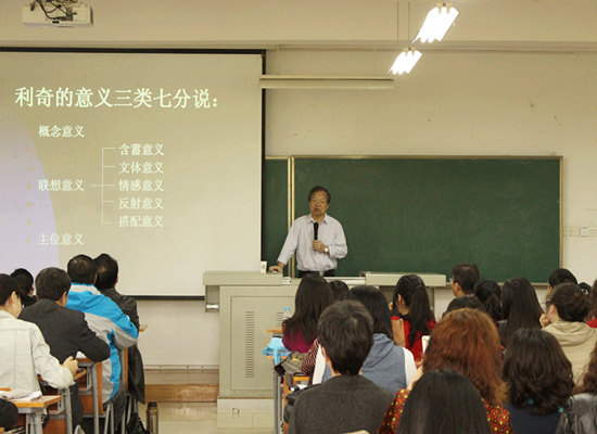 讲座伊始,王教授以自己的求学经历激励大家要努力做好教师的同时搞好科学研究,要珍惜各种学习机会提高自己的专业水平。他强调学翻译,学好语义学尤为重要!他从语义学的角度对翻译中的意义进行了详细阐释。他认为,意义是在语境和功能的基础上产生的,可以分为概念意义、联想意义和主位意义。概念意义是语言交流中最主要的意义,第二大意义是联想意义,它又分为含蓄意义、文体意义、情感意义、反射意义、搭配意义五个层面,最后一个是主位意义。他依次介绍了不同意义的定义、特点及其实际运用,并结合实例对翻译中意义的类型和翻译的关系进行了详细的介绍。他指出,中国人学外语最大的坎就在于两种语言认知差异所造成的困惑,并介绍了翻译时我们最常出现的几种错误及其解决方法。他认为翻译的原则是根据语境以常规对常规,以变异对变异,在翻译中尤其要保留文本的特点和张力。王教授多次引用中西方文史哲知识,也建议外语人才在掌握语言技能的同时还要广泛涉猎中西方文史哲知识。王东风教授的讲座博采中西译论精华,并提出了自己的独特见解,引用大量生动的例子辅以幽默风趣的语言,让大家在轻松愉快的交流中对意义及其翻译有了全新的认知。
