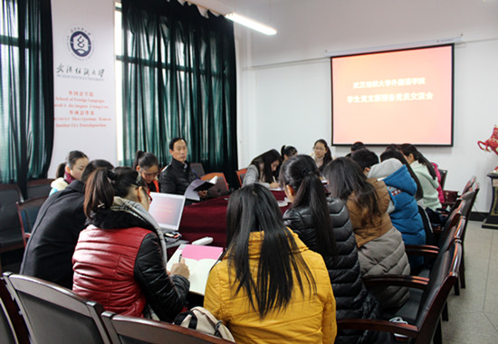 外语学院学生党支部于12月25日中午在7号教学楼336会议室举行预备党员交流会,参与本次会议的有学院分党委书记陈利民、分党委副书记张鹏、外国语学生党支部书记陈新川老师、外经贸外语系学生党支部书记卫周瑶老师以及16位准预备党员。