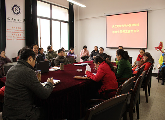 12月18日下午两点,外语学院在会议室召开我们本科生导师工作交流会,学院领导班子和所有导师出席了此次会议,会议由学院分党委书记陈利民教授主持。