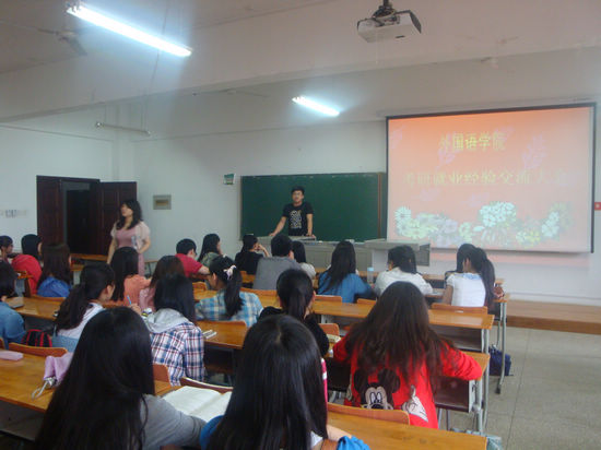 为让低年级同学对未来的人生有个明确的把握,对如何选择以后的道路做个正确的认识。5月24日下午,雷火竞技平台在07-203开展了毕业生考研就业经验交流大会。雷火竞技平台分党委副书记卫冬妹、辅导员常利利老师、8名已考上知名大学研究生或在企业正式工作的08级学生及外国语09级全体学生共同参与了此次大会,交流考研或找工作的经验。