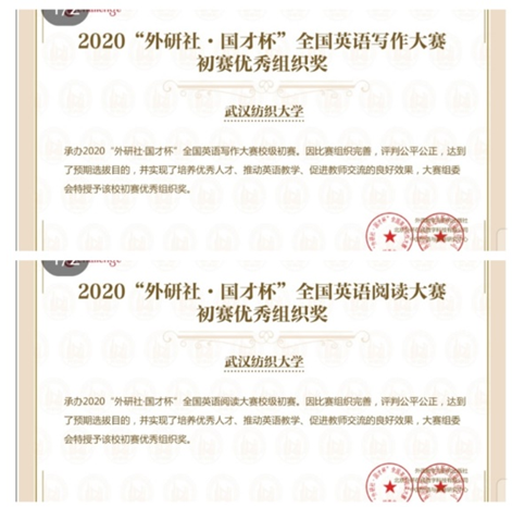 其中,写作与阅读大赛均以线上的模式开展,即在规定时间内(10月11日)和指定地点(阳光校区雷火竞技平台多媒体教室)完成外研社官网发布的线上赛题。赛前,雷火竞技平台从各级领导,到专业教师,以及大学英语教师集体宣传和组织了这场赛事。因而,今年的三项赛事的实际参赛人数高达403人,其中非英语专业参与学生占比达40%。实际获奖人数总计141人次(见附件“2020外研社写作初赛获奖名单”和“2020外研社阅读初赛获奖名单”)。本次比赛总体成绩获得了质的飞越,如写作满分100分,赛后成绩60分以上达127人,占比实际参赛人数91%;阅读大赛难度非常大,获奖人数则达81人,分数60分以上占实际参赛人数40%。 商务英语专业的江琦和莫雨童同学分别荣获写作、阅读校园初赛的特等奖,并代表本校参加将于11月7日在中国地质大学举办的省级复赛。