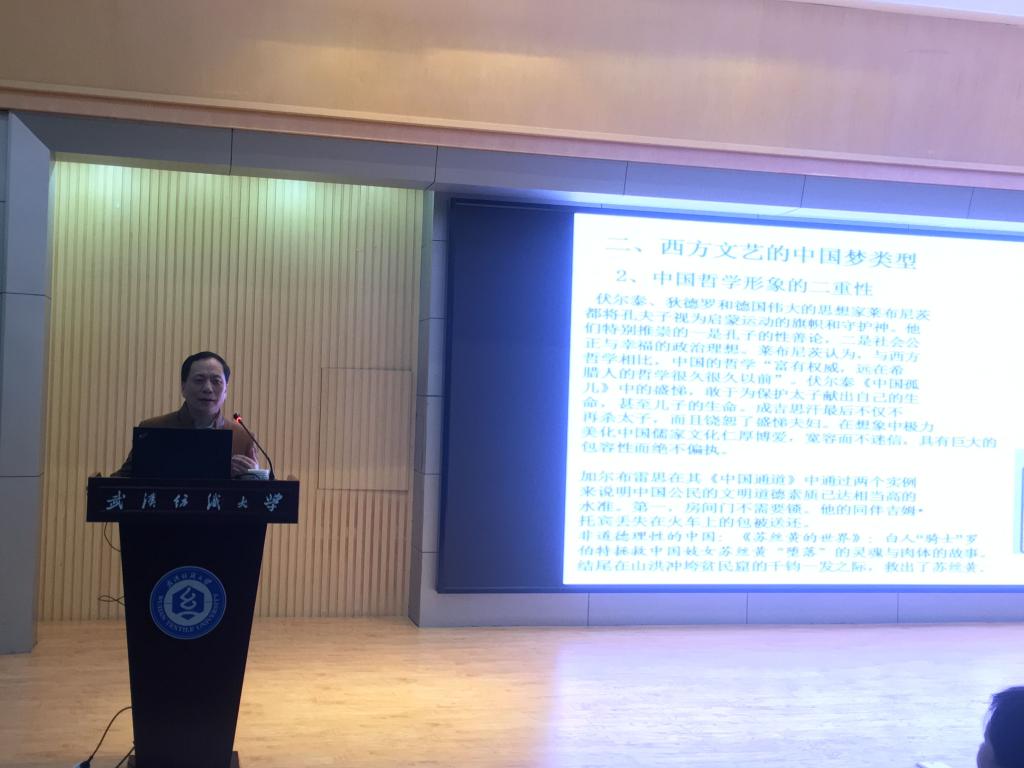 赵教授讲解了西方文艺的中国梦类型,引经据典、旁征博引,从中国地理形象的二重性、中国哲学形象的二重性、中国军事形象的二重性三个方面入手,缜密、审慎地述评了中国形象的不同类别。讲座第三部分,赵教授总结了西方文艺想象中国的两种方法,一是变异式想象,放大某个侧面;二是置换法,以他者代替中国。