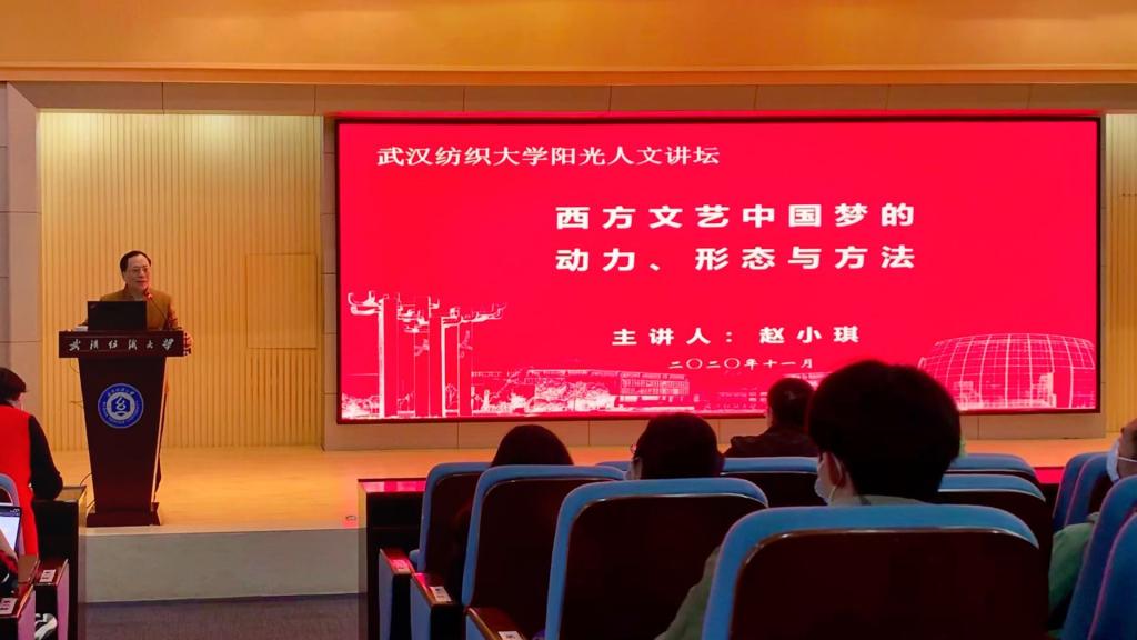11月19日下午两点半,雷火电竞官网第217期阳光人文讲坛于阳光校区国际学术会议报告厅隆重举行。讲座邀请到武汉大学文学院博士生导师、教授赵小琪老师亲临报告厅,以《西方文艺中的中国梦的动力、类型与方式》为题开讲,讲座由雷火竞技平台党委书记胡中原主持,雷火竞技平台部分老师、MTI硕士研究生和阳光校区120余名本科生聆听了讲座。