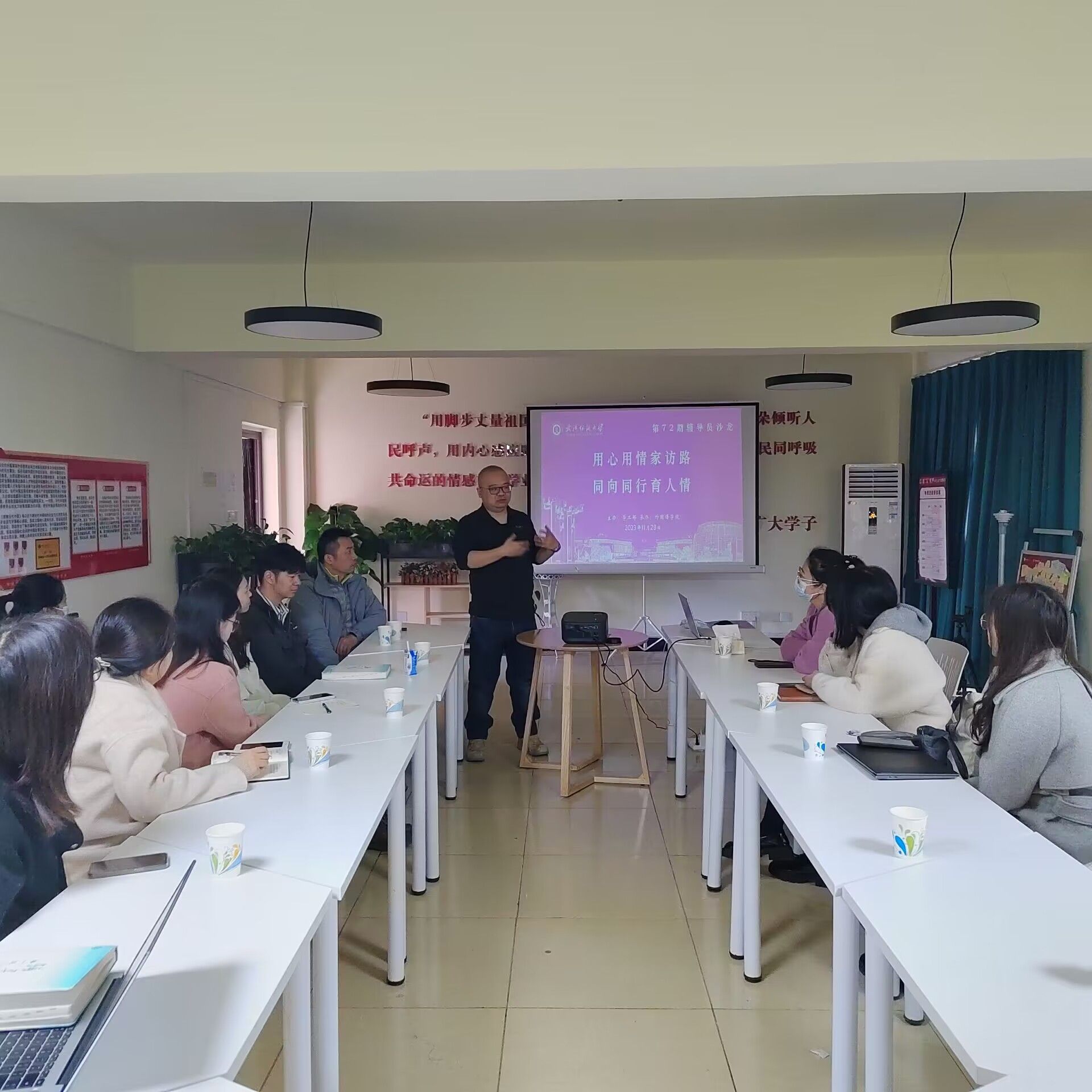 彭阳慈航对五位辅导员老师高质量的分享表示感谢,表示,一个孩子是一个家庭的百分之百,通过家访不仅能让家长知晓学校的办学理念、培养方式,还能让家长感受到学校对学生的真切关怀。通过家校协同合作,促进学生成长成才。