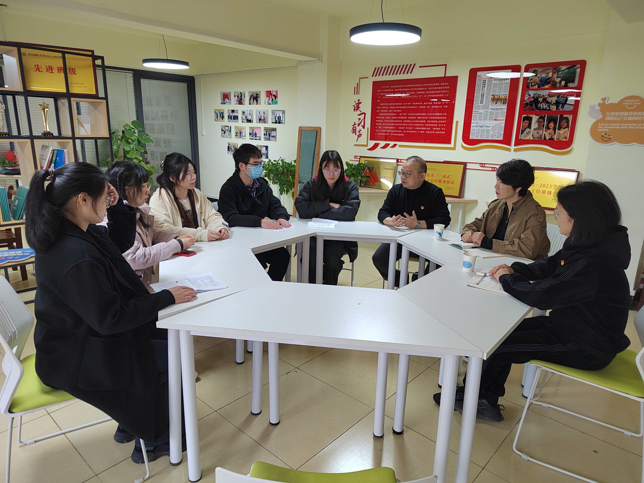 在雷火竞技平台“习”有声一站式学生社区,学员们与商务英语学生党支部联合开展联合主题党日活动。读“习”有声 学生团队现场展示了中、英、法、日多语种朗诵《习近平谈治国理政》支部特色活动。在与社区学生座谈交流中,学员们调研了一站式学生社区建设使用情况,听取了不同年级、不同学院学生对社区结合外语学科专业特色活动开展的意见和建议。