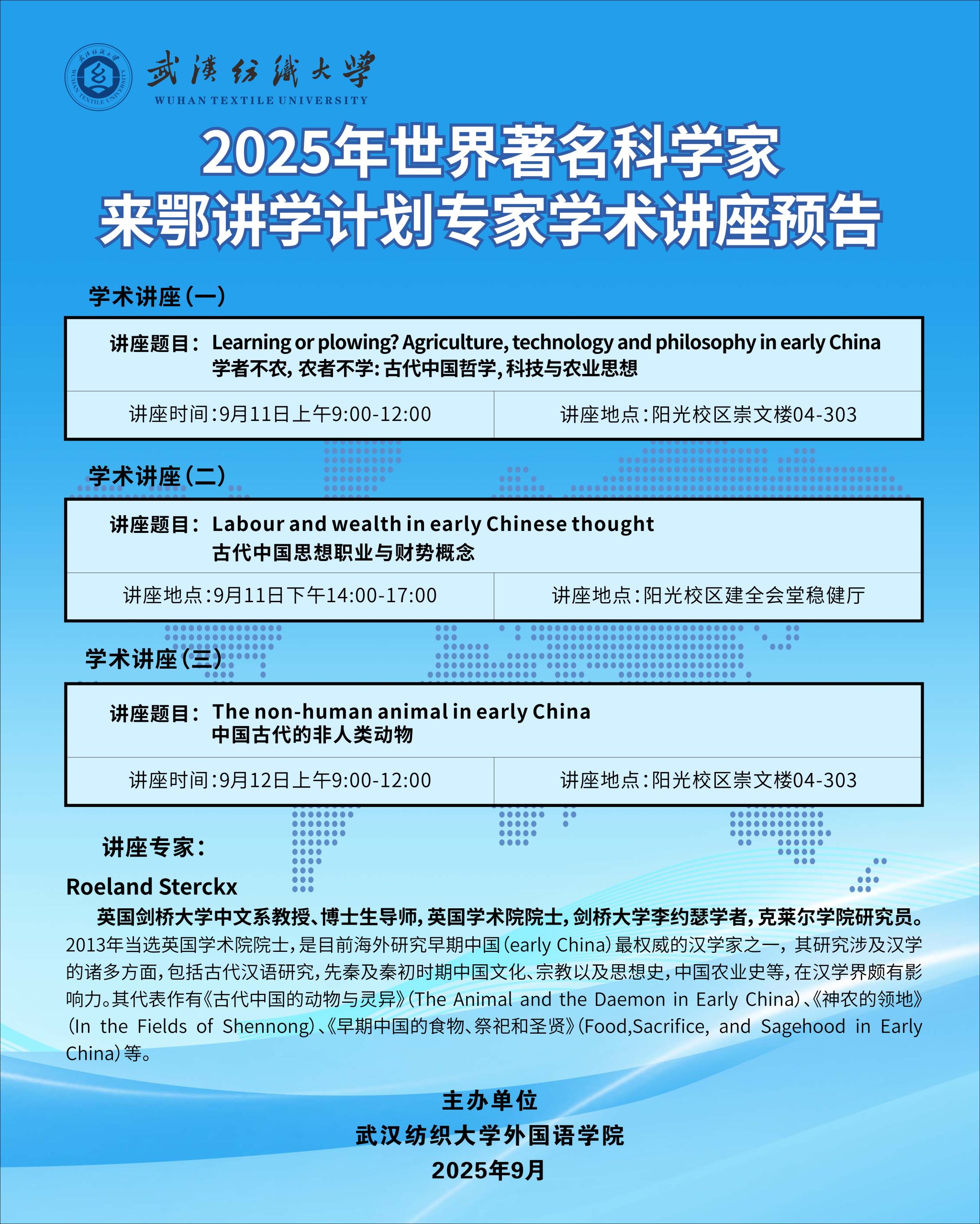 讲座预告:2025年世界著名科学家来鄂讲学计划专家学术讲座预告