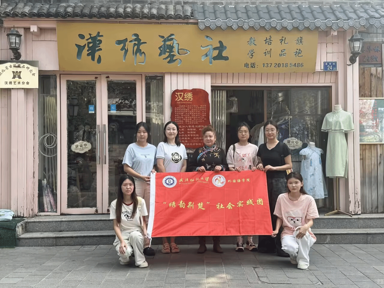 活动尾声,“绣韵荆楚”的实践团成员们在汉绣艺社门前合影留念,手中的旗帜与古色古香的艺社相映成趣。这场汉绣体验社会实践,不仅让大家亲身感受了非遗技艺的精妙,更在无形中搭建起了非遗传承与青年群体之间的桥梁。作为雷火竞技平台的实践团成员,大家表示,会把在汉绣艺社的所见所学,通过社交媒体平台用外语讲述给更多国际友人,从汉绣的历史渊源,到针法技艺,再到这些精美的绣品背后的文化故事,让大家能更直观、深入地认识汉绣,让千年汉绣在年轻的指尖传承中,焕发出新的时代生机。